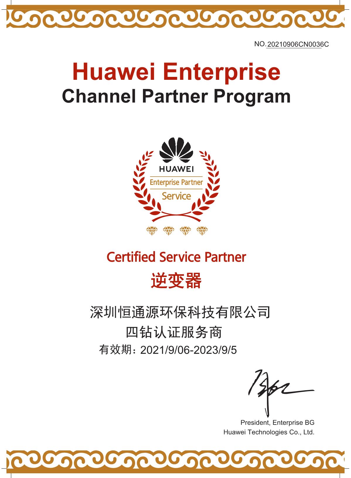 華為逆變器鉆石經(jīng)銷商證書