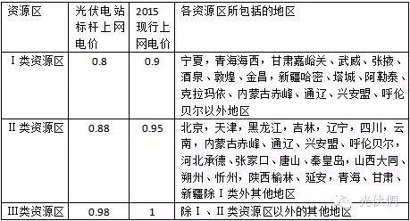 2016年全國(guó)光伏發(fā)電上網(wǎng)電價(jià)表單位:元/千瓦時(shí)(含稅)